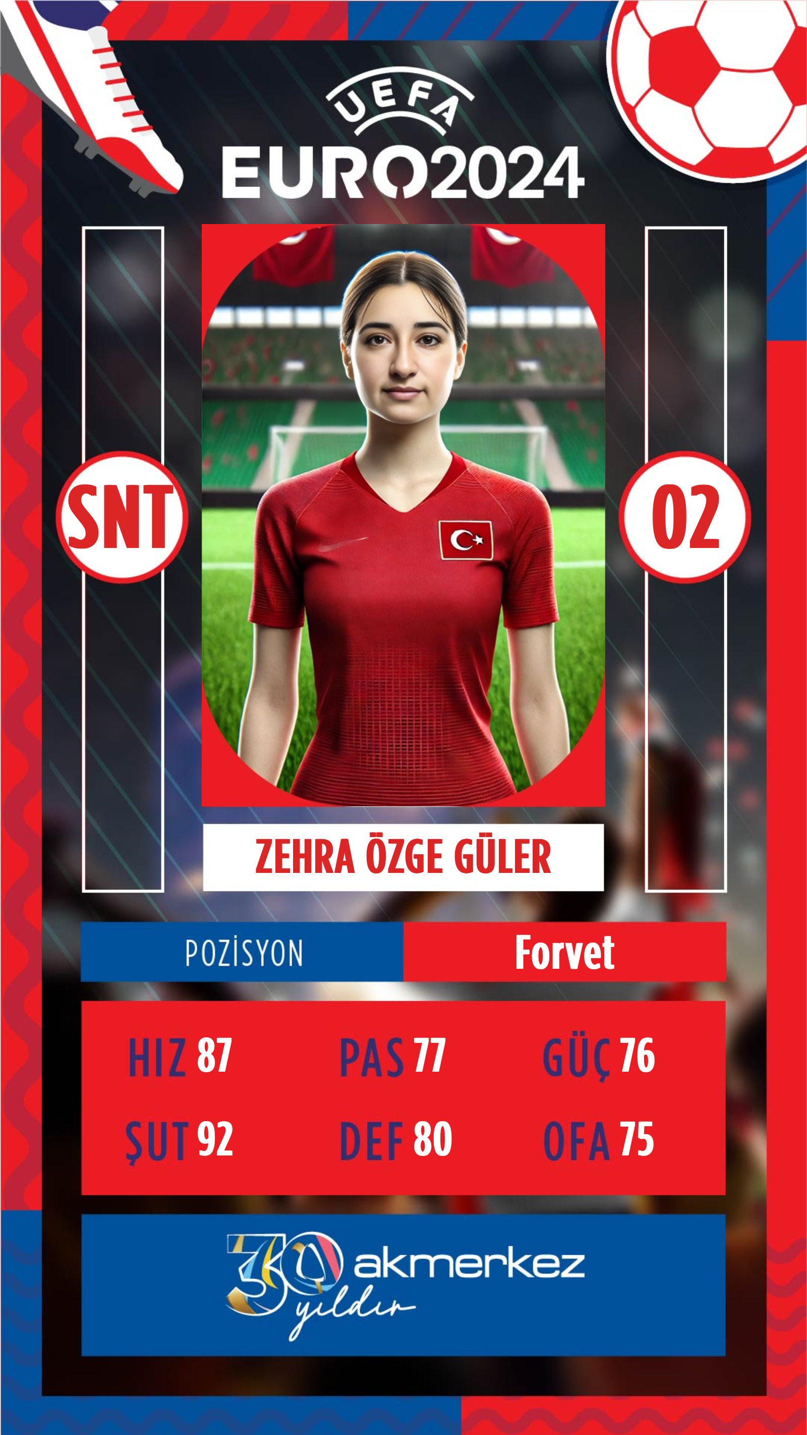 İsim, soyisim ve seçilen saha pozisyonu gibi bilgiler, kartın genel tasarımıyla uyumlu bir şekilde eklenerek kartı tamamen kişisel bir başyapıta dönüştürür.